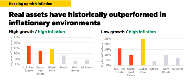Real Assets is an investment in physical assets, such as real estate, energy production/distribution, and infrastructure. It is wider definition than typical real estate as it can also include power plants, roads, tollways, and even data centers.