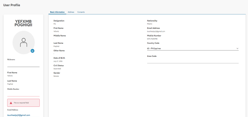 By clicking this button, owner will trigger the authentication window in order to validate his new mobile number or email address.